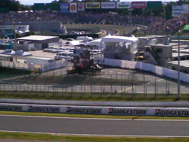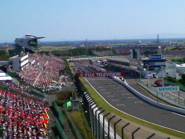 モニター横にある透けて見える建物はフジテレビの鈴鹿特設スタジオになっており当日ここにエビちゃん、山田優らが居たそうだ(オペラグラスで見ていた人がそういっていた・・・)