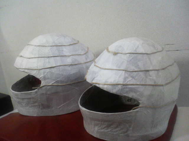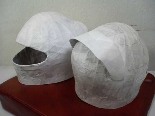 和紙の糊が乾いたら、次にヘルメットにディフューザーの取り付け