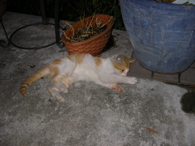 仕事場の玄関先でゴロゴロ、ゴロゴロしておりました。深夜雨が降り始めちょっとした所で雨宿りしていたのでそっとミルクをやり後ろ髪引かれるような思いで帰宅。。。