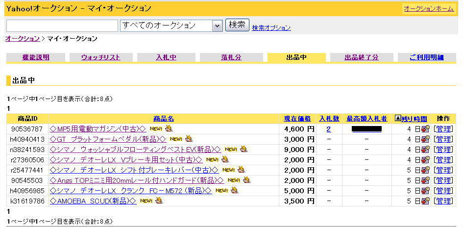 やはりあまり損はしたくないのでそこそこの値段で出品。早くもエアガン関係の品物に入札が・・・。