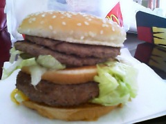 食べてみると確かにビーフが2枚多くなっているのでボリュームはある感じはする。けど、これ一個で700㎉あって、これにポテト、コーラ何かにしたら軽く1000㎉を超える。