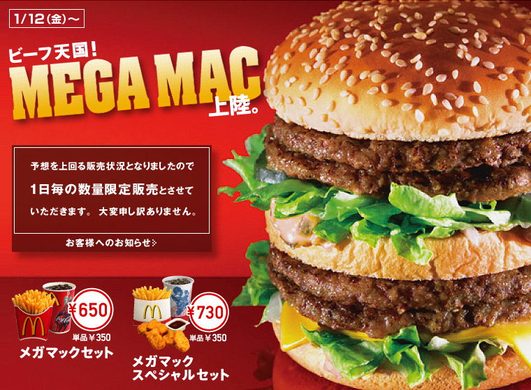 今では、売れすぎて限定数販売になっているメガマック。。。