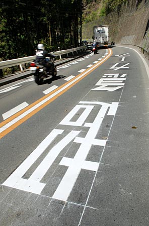 ある意味分かりやすくて良いかもしれないが、進行方向から見ると「ブーカ急超」の順に読む事になる。スピード出していてカーブに差し掛かり最後の「超」が見えたとき時すでに遅しの気が・・・。「もっと早く『超』だった事を教えろよ!」って言う奴も出て来ないとは限らない。